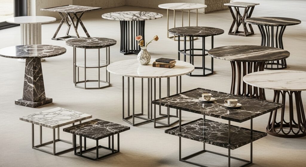 أنواع طاولات خدمة رخام حسب الخامة والتصميم